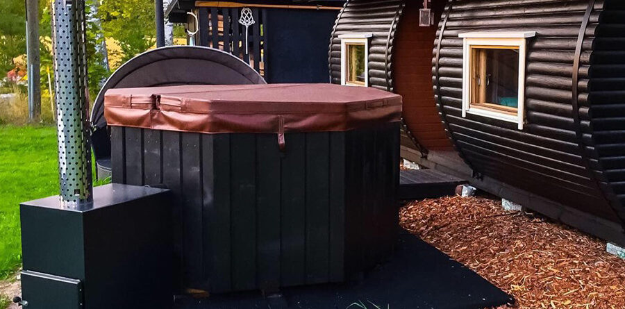 The wood burning heater for the wooden hot tub